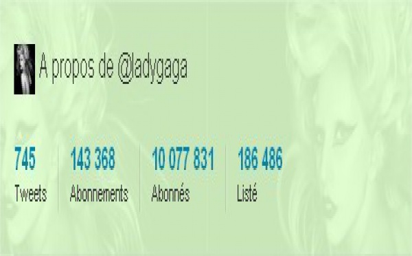 Lady Gaga explose les compteurs sur Youtube, mais pas seulement, puisqu'elle vient de franchir le cap des 10 millions de followers sur son compte Twitter. (@ladygaga ) 10 millions, voilà de quoi faire transpirer les spécialistes de la diffusion de pub sur Twitter, et en plus, son compte est relativement actif pour une star de...