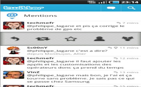 Twitter vient de livre une mise à jour de son application sous Android.Cette application Twitter reprend quelques petits trucs de l'application Twitter pour iPhone notamment en ce qui concerne la mise à jour de la Timeline, il suffit de " tirer " la Timeline vers le bas pour lancer le Refresh.La photo ci dessus représente la...