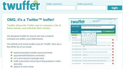 Si on part du principe que Twitter est un moyen de communication comme un autre, et que vous ne souhaitez sous aucun prétexte, oublier de fêter l'anniversaire d'un ami ou peut être, plus simplement, si vous souhaitez rappelez 260 fois en 260 jours à tous vos followers une date importante à retenir alors vous aurez besoin de Twuffer, qui vous permet de programmer d'avance vos envois.
