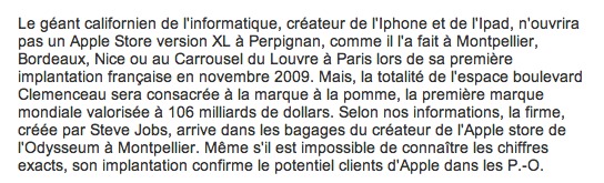 Très honnêtement, moi qui habite dans le coin, j'espérais que ça arrive un jour en me disant tout de même que Perpignan était peut être pas assez "gros" pour cela. Et bien si, un Apple Store va bien ouvrir à Perpignan et c'est l'Indépendant qui nous apprend ça ce matin