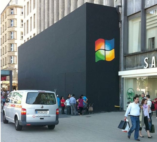 Voilà qui n'est pas commun. La photo ci-dessus, c'est l'Apple Store de Hambourg, en pleine construction et caché par les barricades noires communes à tous les Apple Store.