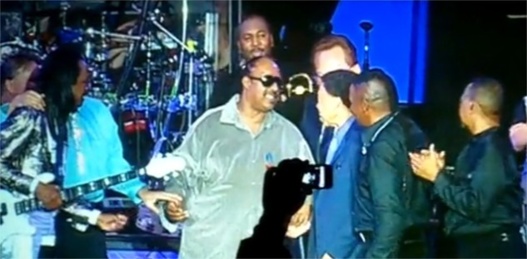 Mais ce n'est pas tout, il y a eu de belles surprises lors de ce concert, et celle qui a était de taille, c'est lorsque Stevie Wonder est arrivé sur scène, au côté de Maurice White, co-fondateur du groupe avec Philip Bailey, atteint malheureusement aujourd'hui par la maladie de Parkinson.