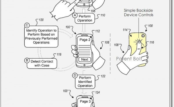Google est sur les traces d'Apple à propos du contrôle des smartphones tactiles en imaginant une autre façon d'utilisation qui consiste à rendre une zone tactile au dos de l'appareil. Apple avait déposé un tel brevet en 2006 visiblement et aujourd'hui c'est Google qui a fait de même. Utiliser une zone de la surface arrière...