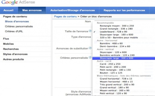 Google Adsense - un nouveau format d'annonce, 300x600 - 26/11/2012