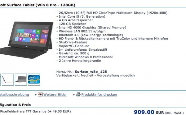 Des tablettes Microsoft Surface Pro de 64 et 128 Go bientôt ? - 07/11/2012