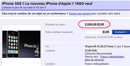 iPhone 3GS - 2000 € sur eBay !!! N'importe quoiPublié par Philippe le Mercredi 17 Juin 2009