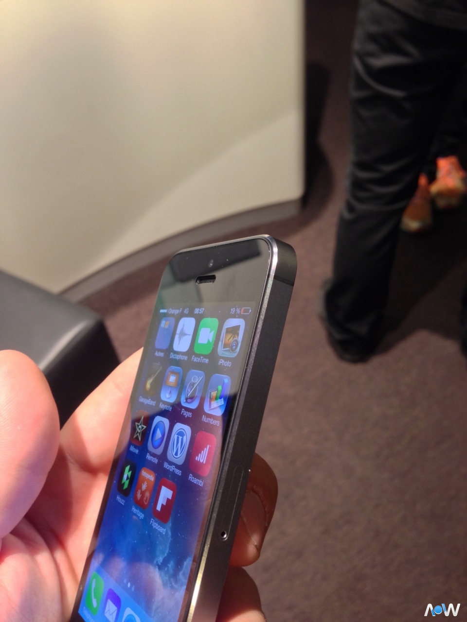 J'ai donc pu avoir entre les mains le temps de quelques dizaines de minutes, ce nouvel iPhone 5S coloris non plus appelé "noir" mais "gris sidéral", pas de gros changements en effet niveau extérieur, en parlant un peu avec un vendeur Orange ce dernier m'assure qu'Apple a réglé le problème d'écaillement de peinture en changeant le finition du contour, l'avenir nous dira si ce problème est désormais résolu.