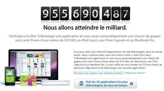 Le nombre d'applications téléchargées sur l'App Store pour l'iPhone ou l'iPod Touch va atteindre le Milliard dans les heures à venir.