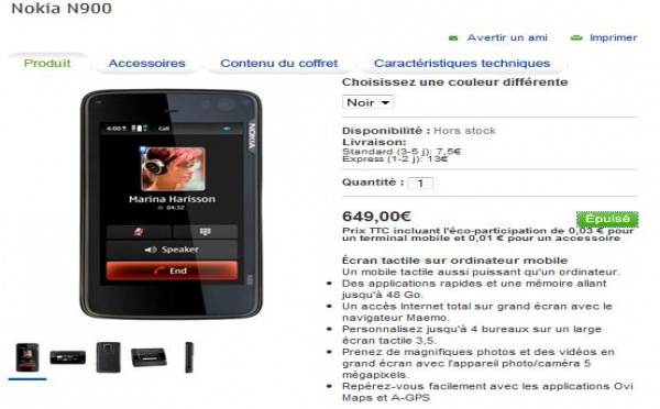 Le Nokia N900 est affiché chez Nokia à 649 €, pour l'instant le site indique Stock Epuisé mais il devrait passer en pré commande rapidement.Donc, le Nokia N900 coutera, pour ceux qui ne peuvent attendre, la somme de 649 € alors qu'en Allemagne et en Italie, il est vendu à 600 €.La raison pour cela ? Je vous laisse voir ce que...