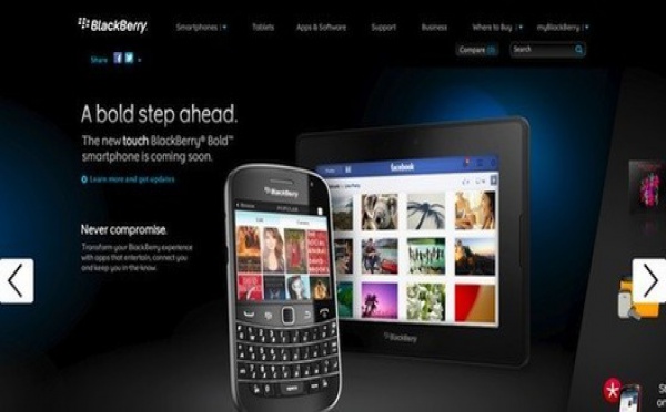 Le Blackberry Bold Touch sur le site de Blackberry - 30/04/2011