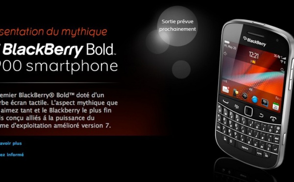 Le Blackberry Bold Touch, dont on parle depuis un petit moment, un mobile qui reprend la taille du premier Blackberry Bold 9000 en y ajoutant un écran tactile et l'OS 6.1, a fait un apparition sur le site de Blackberry avant de disparaître. Cette apparition, du moins cette page déjà prête, est signe d'une sortie dans très peu...