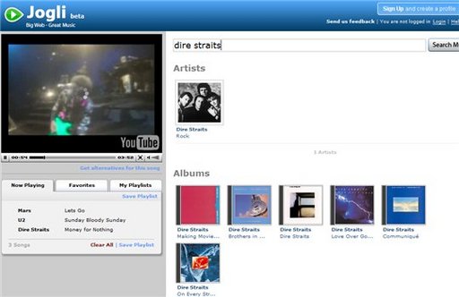 Si on oublie 2 mn le côté légal de la chose, Jogli propose donc l'écoute, la création de playlist et le partage de musique . Vous n'avez plus qu'à choisir vos artistes sur les 12 millions d'albums présents dans la base de données.