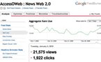 La courbe ci-dessus correspond à aux flux RSS d'AccessOWeb et on peut voir combien de vues cela fait journalièrement et bien sur, cela fluctue en fonction de la fréquence de publication.Sur le flux d'AccessOWeb, il y a un peu de pub