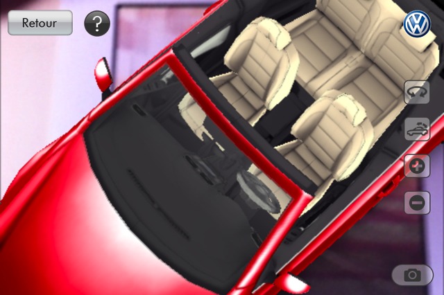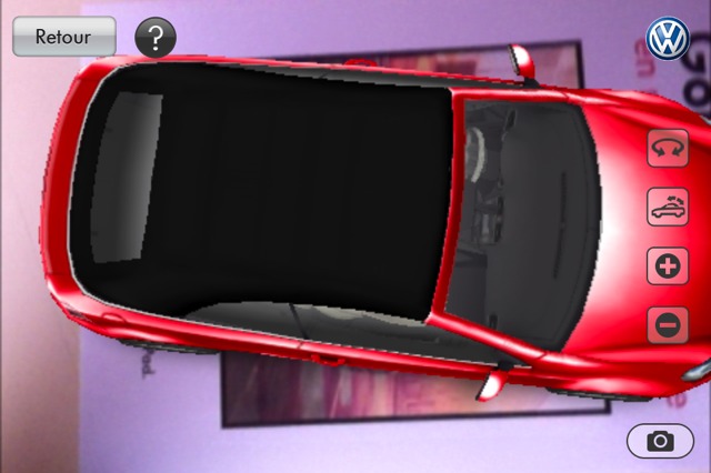 Et là, de suite, on s'y croit un peu plus, je dois avouer que l'application est bien faite et que cette réalité augmentée nous plonge presque réellement dans l'habitacle de la Golf sachant que les options proposées sont les mêmes que dans le visualisateur 3D de l'application.