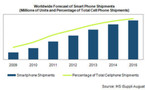 Les smartphones représenteront environ 54.5% des téléphones mobiles en 2015, selon l’institut de recherche IHS. Les prévisions des ventes mondiales de smartphones s’élèveraient à 1.30 milliards en 2015 contre 478 millions expédiés en 2011. A l’heure actuelle les smartphones représentent 32.5% du...
